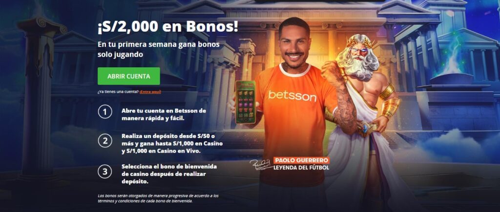 - Este Bono Betsson de Bienvenida para apuestas deportivas, es exclusivo para jugadores de Perú.