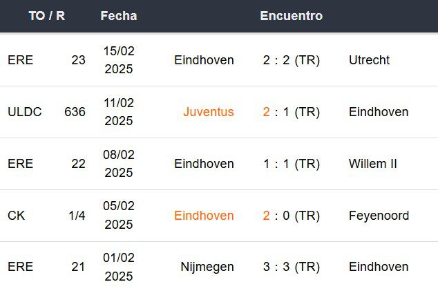¡Bienvenido al centro de datos del próximo pronostico deportivo del partido de la Pronósticos entre Eindhoven vs Juventus! Aquí en Betsson encontrarás todos los detalles relevantes sobre el partido programado para el 19/02/2025 15:00:00 (UTC-05:00).