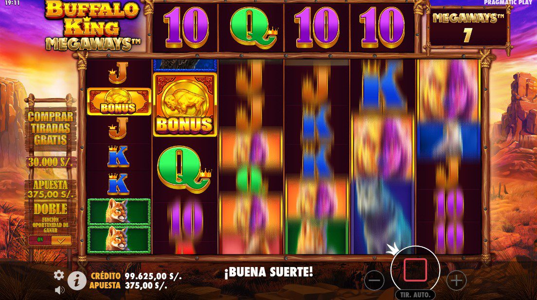 Finalmente, es importante mencionar que los límites de apuesta varían según el estilo de juego. Es decir, si estás jugando a Buffalo Kings Megaways en su forma normal, tu apuesta va de S/0,60 hasta S/300. Pero, cuando la función Ante Bet está activada, los límites varían, siendo la apuesta mínima de S/0,75 y la máxima de S/375.
